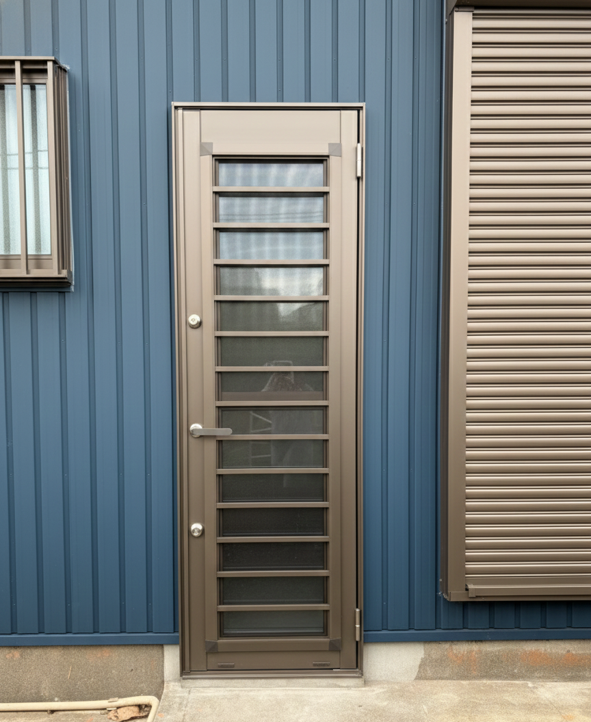 今回の施工では、採風・断熱勝手口ドアを採用。